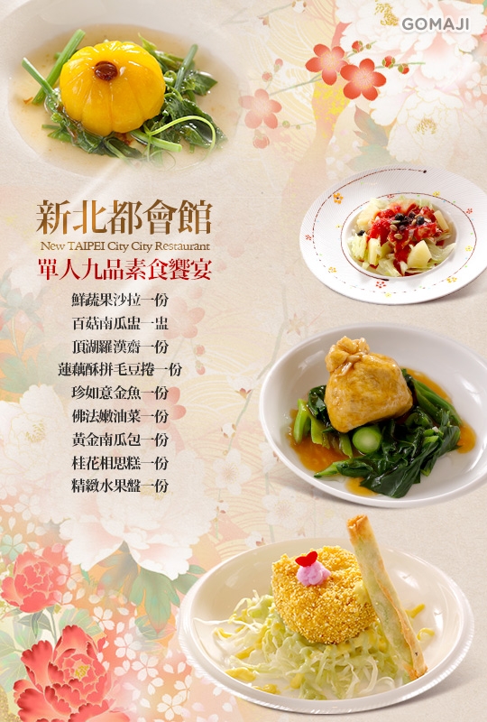 【新北都會館】獻上單人九品素食饗宴!吃素的貴賓也能享用精緻健康的噴香佳餚,純粹自然的美味,讓味蕾也樂活一下!